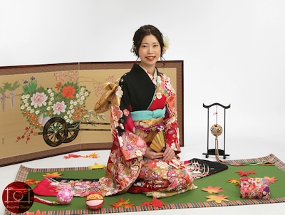 アキヤマスタジオでは、持込みの振袖でのお支度、写真撮影も歓迎しています。お母さまが着た振袖をお嬢様が着る場合、小物が古いのではないか、足りないものがあるのではないか、などと心配になりますが、それぞれの悩みに丁寧に対応しています。