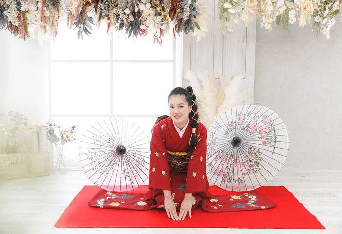 albicocco(アルビコッコ)の前撮りは、自前の振袖を持参して行う形となります。ママ振・姉振をお持ちの方は、ぜひお母さま・お姉さまから振袖を借りて記念の写真を撮りましょう。